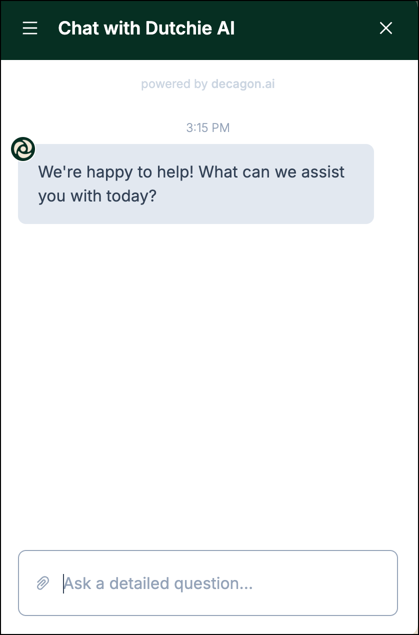 When you ask our Dutchie Chatbot a question, it pulls answers directly from our Help Centers and product documentation. Dutchie Chatbot is fast, helpful, and always learning.