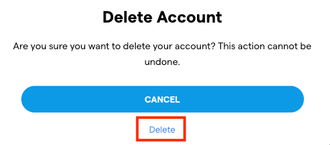 You will be prompted with confirmation, select delete, and your account and associated data will be deleted.